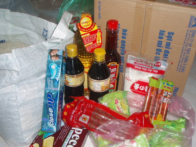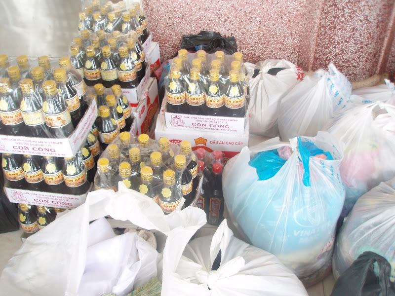 Ngoài ra, mỗi phần quà còn có thêm : xà bông, nước mắm, nước tương, dầu ăn, dầu xoa, xúc xích, bột ngọt, đường, bánh, quần áo & 10.000 đ/phần, do các anh chị trong nhóm trao tặng .