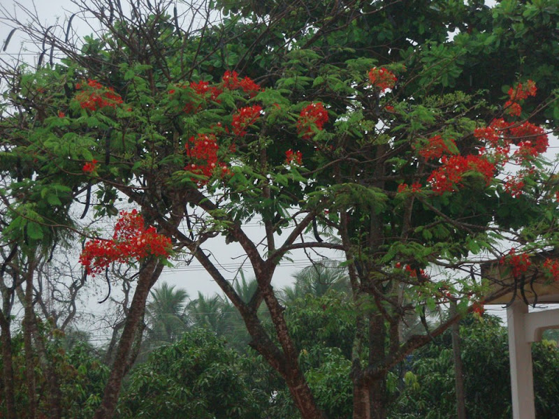 1h30 tới Trung tâm bảo trợ xã hội tỉnh Tiền Giang!-khỏang 200 người! Cũng may là đi vừa tới nơi thì trời lại mưa to! Nhìn những cành phượng đỏ rực trong 1 chiều hè mưa rơi lất phất, cảnh đẹp thế mà … cuộc sống của những người nơi đây sao buồn đến vậy, ko biết những người nơi đây có chiều chiều ra ngồi ngắm cảnh ko, hay là… hix